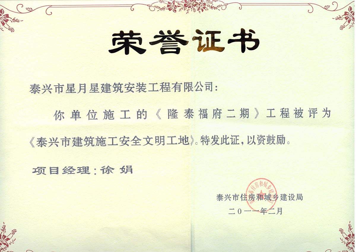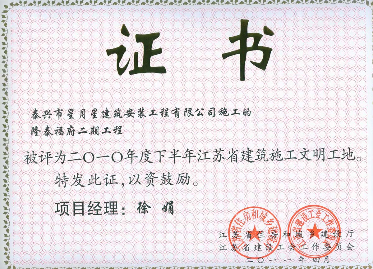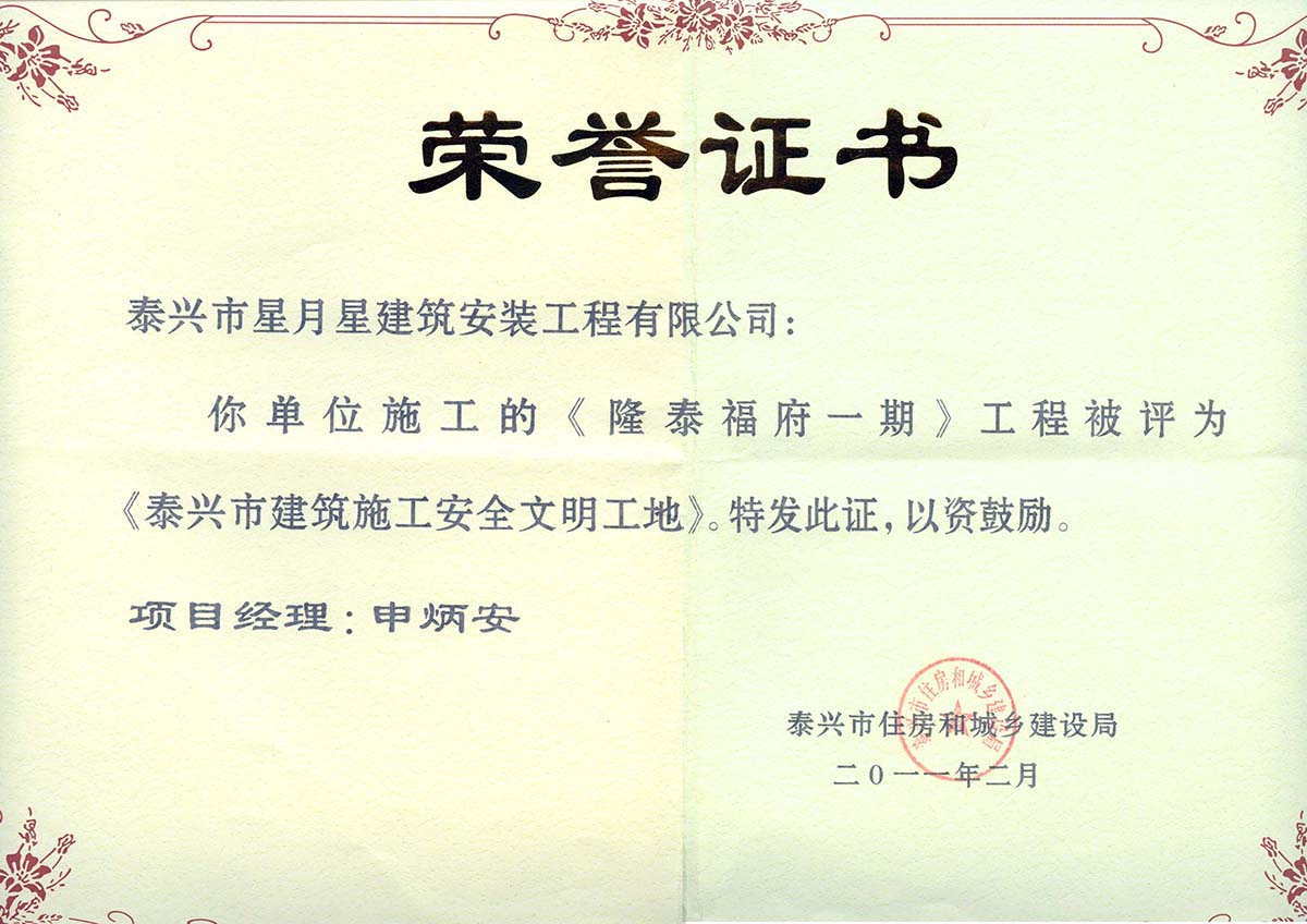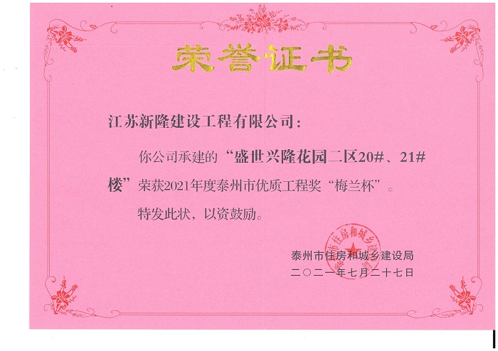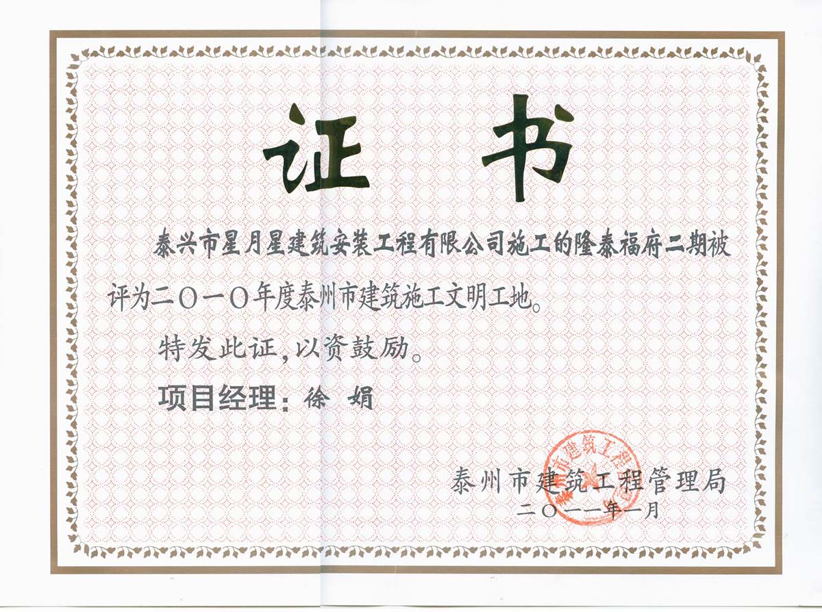20多年發(fā)展歷程,我們以“打造精品工程,樹立企業(yè)形象,積極開拓市場,誠信服務社會”為宗旨,內(nèi)聚實力,外樹形象,憑借優(yōu)質(zhì)的施工質(zhì)量和良好的社會信譽,逐步發(fā)展成為一支泰興建筑業(yè)強軍,取得了良好經(jīng)濟效益和社會效益。公司組織管理機構(gòu)健全,各類工程管理、技術人員齊全,具備完善的管理體系。先后承建了泰興隆盛花園、盛世興隆花園、寶隆花園、興隆壹號、興隆福府、隆府福地、書香名院、啟東凱旋華府、開封燕瀾府、蘇州觀云悅苑、興化水潤隆府和小戚安置房、金湖龍?zhí)└8⑴d隆悅府等商住小區(qū),以及南京寶隆時代廣場、泰興觀湖商業(yè)廣場、泰興恒隆大廈、海安隆政初級中學、泰隆集團傳動科技產(chǎn)業(yè)園、新加坡新浦化工、廣西桂平教育PPP項目、廣西南寧舊城改造、泰興鴻泰新村等商業(yè)綜合體、工業(yè)、公建、舊城改造和政府安置房項目。其中多項工程獲評省、市級安全文明工地和市級以上優(yōu)質(zhì)工程。公司連年獲評為泰州市建筑業(yè)明星企業(yè)、泰興市規(guī)模先進企業(yè)、 綜合實力十強企業(yè)和建筑業(yè)“突出貢獻獎”、“開拓經(jīng)營獎”等各類榮譽獎項。