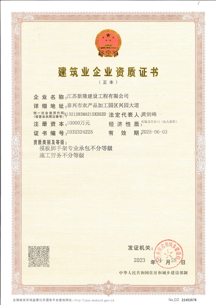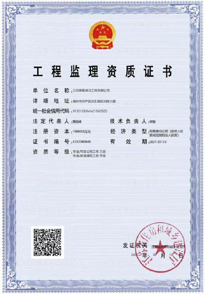 江蘇新隆建設工程有限公司 江蘇新隆建設工程有限公司系江蘇星月星建筑安裝工程有限公司全資子公司,于1999年始創(chuàng)建于“建筑之鄉(xiāng)”——江蘇泰興。2020年12月,基于集團化運營和產(chǎn)業(yè)持續(xù)升級的發(fā)展目標,江蘇星月星建筑安裝工程有限公司全資控股設立江蘇新隆建設工程有限公司,分立取得建筑工程施工總承包一級資質(zhì),承繼經(jīng)營所屬產(chǎn)業(yè),產(chǎn)業(yè)涉及建筑工程、新型建材生產(chǎn)、工程檢測、設備建材租賃、物流運輸?shù)戎T多領域。